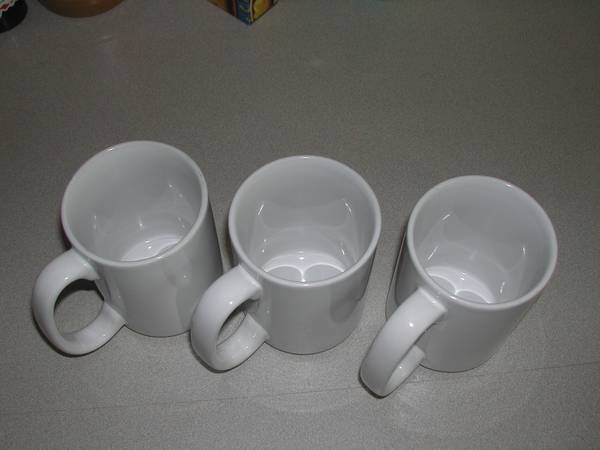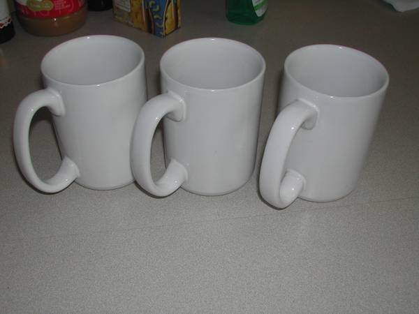 Lot of 16 (sixteen) White Porcelain Coffee Mugs - Used - larger 12 ounce size - all matching.