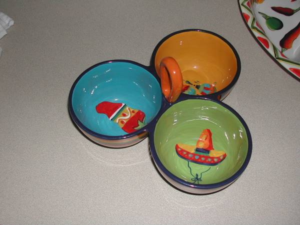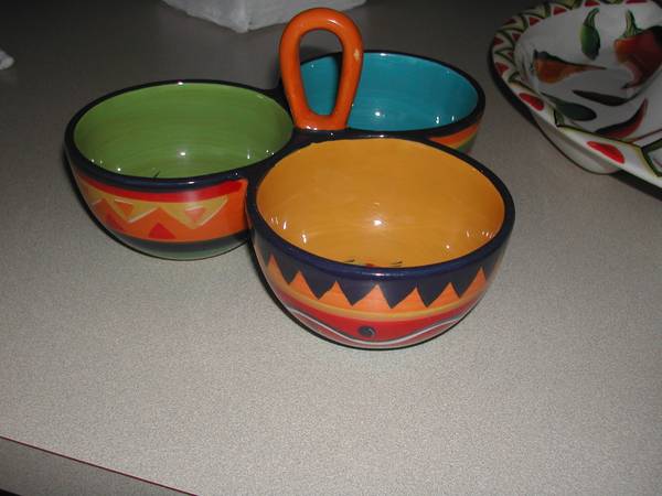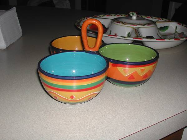 Also a three compartment condiment bowl with handle ... beautiful colors! Hand wash.