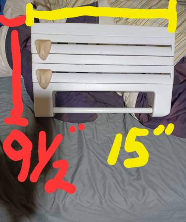 Wall mounted kitchen roll dispenser with cutters. Dual compartment plastic wrap & foil organizer. Space saving design for countertop or cabinet. Ideal for paper towels, bags, and small items....