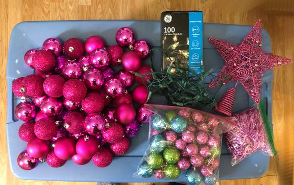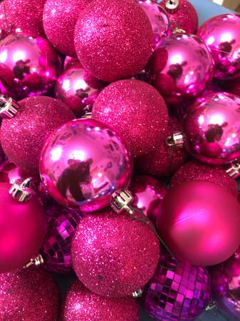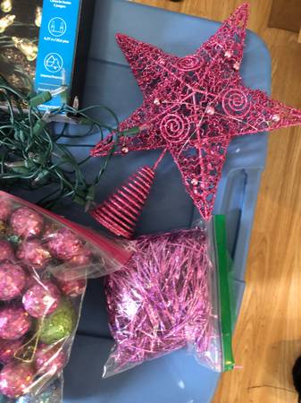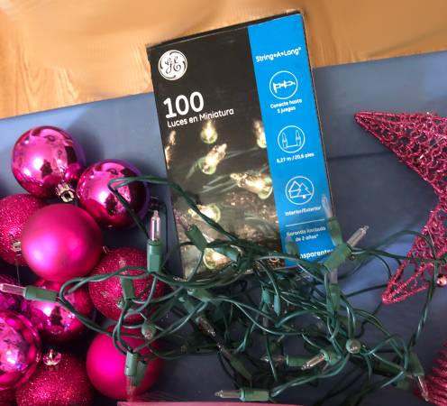 large lot of hot pink christmas tree decorations ornaments lights tinsel star 56 multi finish christmas tree ornaments new white 100 count string lights (green cord) 12 foot white lights (green...