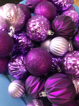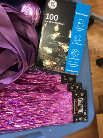 large lot of purple christmas tree ornaments lights ribbon decorations bulbs 50 multi finish/color christmas tree bulbs 12 foot long satin ribbon (i used this as garland new box of 100 white lights...