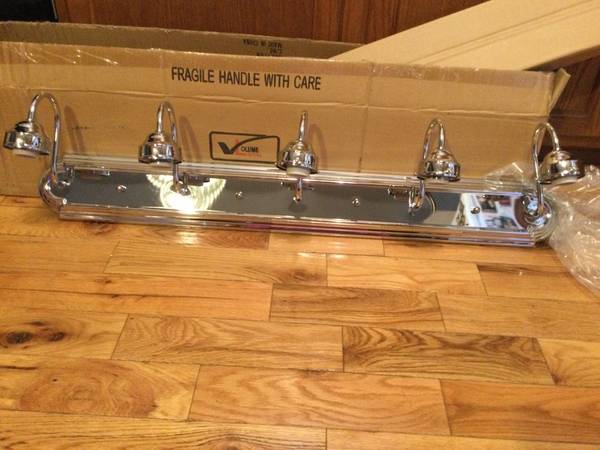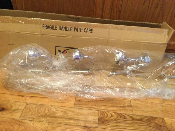 Brand new. I have 3 in stock right now and they are $15 each. Pickup is on Aigen Ave. Cash only. Volume Lighting 5 light chrome v0225-3