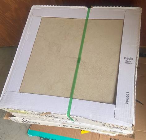 Boxes of Emser Tile Rosarito, 18 x 18 inches. 49 pieces in total (for a floor size of 110 sq ft). Includes 2 bags of mortar for free, and 1 bag of grout