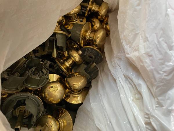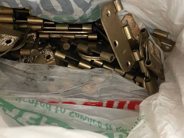 18 DOORS WORTH OF BRASS HANDLES, HINDGES AND HARDWARE, ALL SCREWS INCLUDED