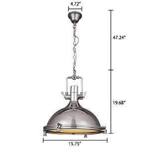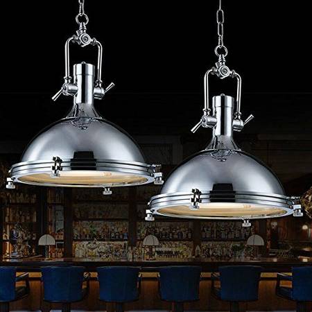 Brand New, in original box. Industrial Nautical Style S Retro Single Pendant Chrome Ceiling Mount Light Fixture. (#AF2838). 47.24" (total length w/ chain) x 15.75"W x 19.69"H (fixture measurement)....