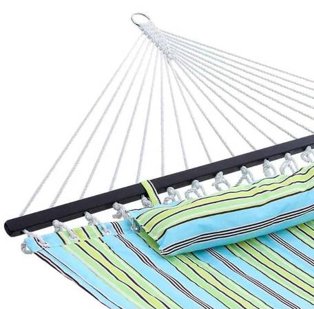 NEW: 2-Person Hammock w/ Wood Spreader Bar & Pillow - 133.8" x 55.1"...