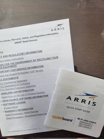 Arris surfboard 3.1 cable modem. SBG6950AC2. MUST PICK UP, CASH ONLY SMOKE FREE HOME