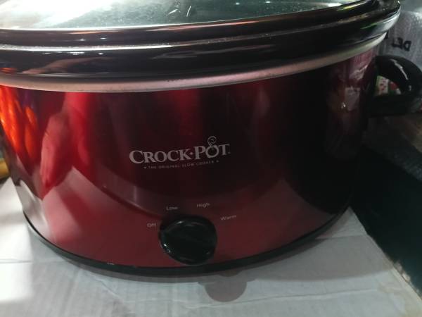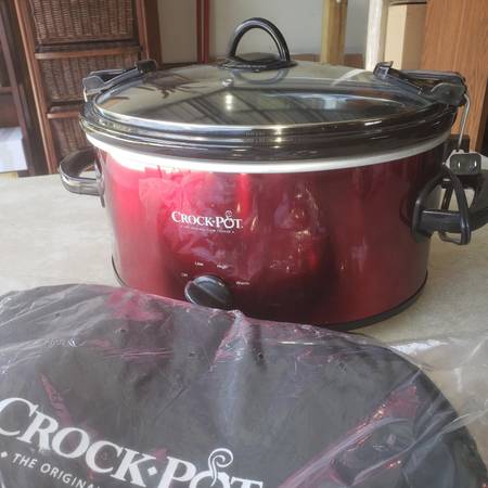 Crock-Pot 6 Quart Slow Cooker in Red Stainless Steel with carry bag.