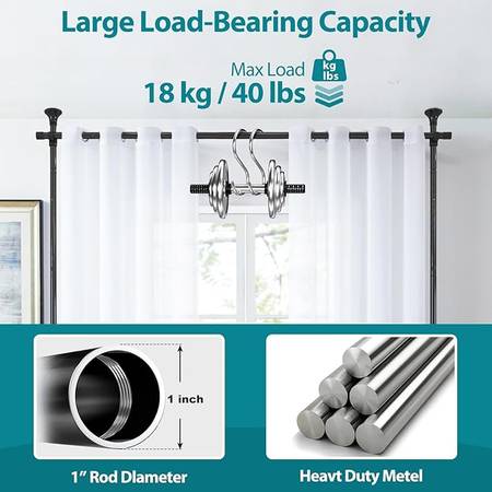 rod is made of high-quality steel. It is strong enough to support even the heaviest curtains up to 40 lbs, making it perfect