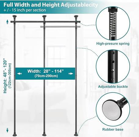 120” Tall 114” Wide Adjustable Floor to Ceiling Partition Room Dividers, Heavy Duty