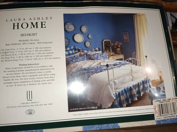 Laura Ashley Home Blue White Platform Bed skirt, Full Washable No-Iron