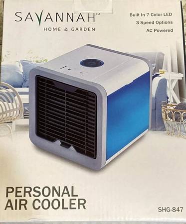 This personal air cooler from Savannah Home & Garden is the perfect addition to any indoor or outdoor space. With three adjustable speeds and seven color LED lights, you can customize your cooling experience to your liking. The push button control style makes it easy to operate, while the square shape and white color add a touch of modern style to any room. Made of durable plastic and manufactured in China, this AC-powered cooler is suitable for indoor or outdoor use. Its model number is SHG-847, and it comes equipped with a number of features, including three speeds and a variety of color options. Whether you're looking to beat the heat or simply want to add a touch of style to your home, this personal air cooler is the perfect choice.