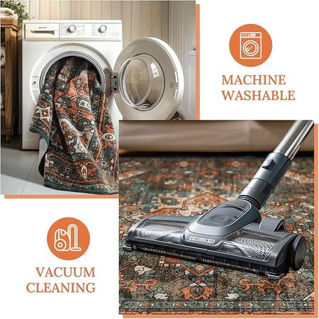 WASHABLE & EASY TO CLEAN Our rugs are machine washable and very washable without any lint falling off or edges falling off after cleaning. The thin pile design allows the rug to air dry quickly after washing. With daily use, the surface only needs to be cleaned with a vacuum cleaner and a broom.