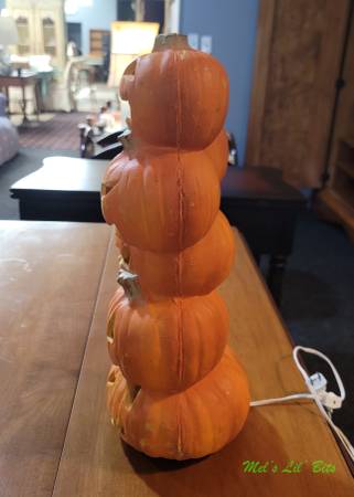 The Vintage TRENDMASTERS 18" Lighted Pumpkin Totem Pole Stacked Halloween Foam Mold is a festive and unique Halloween decoration from 1995.
