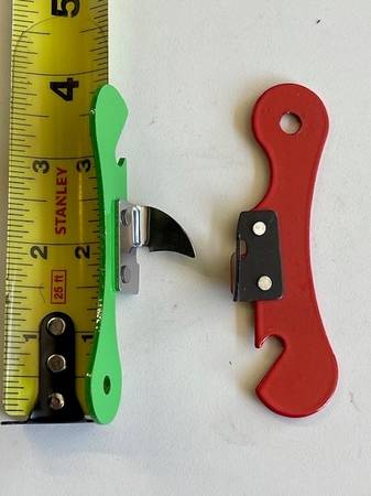 I have about 30 of these in green and red. They measure 3.75" in length and are a simple, but durable design.