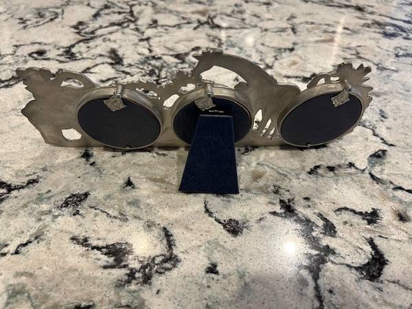 Vintage Seagull Pewter Triple / 3 Photo Frame. Zoo animals design. Oval shape approximately 2" opening. 10" wide x 4" high.