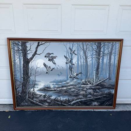 Vintage Mid Century MCM Letterman duck painting. Measures 63.5” wide x 43.5” tall. Call or text 614-4two4-09two6.
