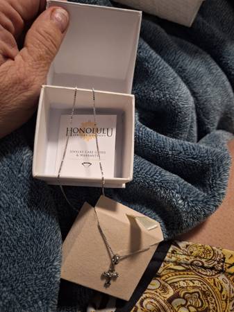 One is cubic zirconia stone is blk. The other one is from a company called Honolulu. Asking 75 for both. Never been worn