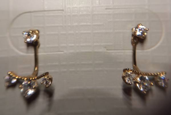 The stones are cubic zirconia simulated diamonds. They are carefully constructed to pop and shimmer like very high quality diamonds for a fraction of the price. They are deep cut and set high and angular to reflect and beam a LOT of light in almost every direction at the same time. They look fantastic from every angle all at once which actually makes them a chore to adequately photograph head on... if you like the pictures and can glean even a small bit of potential from them then rest assured that you will love these expertly crafted beauties when you see them in person