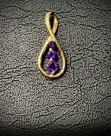 This exquisite 14k yellow gold pendant featuring 3 natural Amethysts. Beautiful, simple, and charming. Crafted with high-quality materials, it makes a standout piece that will add a touch of glamour to any outfit.