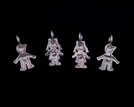 Silver-tone metal gemstone accent kids figure charm pendant lot. Condition: vg to ex.