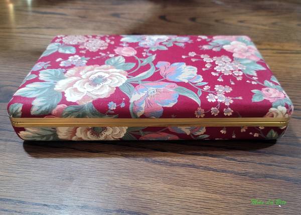 Stunning vintage jewelry box with colorful floral rose and lilac fabric.