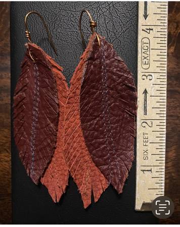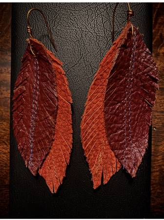 Handmade Earrings, One of a Kind, Genuine Leather, Vintage.