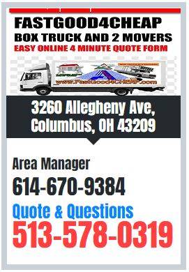 The pricing in the ad is for Columbus Ohio local moves (for small and average moves at least one of the addresses will need to be within 30 miles of Columbus) ***for large moves, both addresses have to be in the Columbus area.
