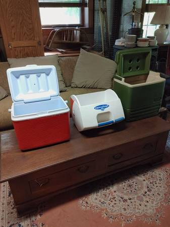 Have a large selection of coolers and thermos with prices from $2 to 45. Need prices on individual items email or call. See sample pics below