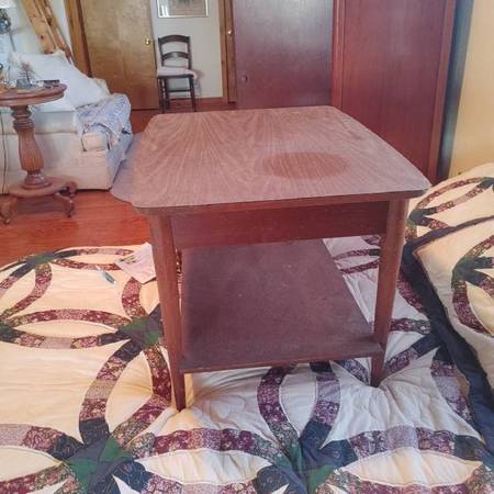Have these two end tables one dark 28Lx24Wx19H for $35 and an oak one 20x20x18 for $30. Need more info email or call. See sample pics below