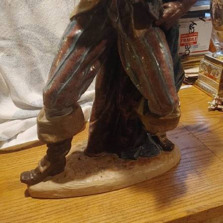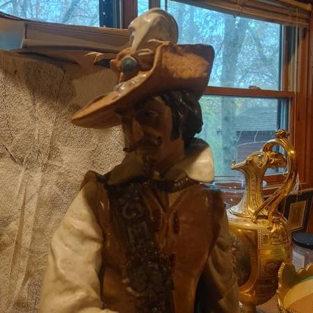 have available this 30 in tall heavy solid musketeer statue, cant find any markings, signatures or stamps. Need more info email or call. See sample pics below