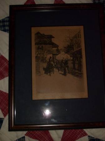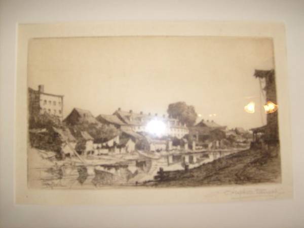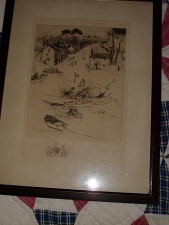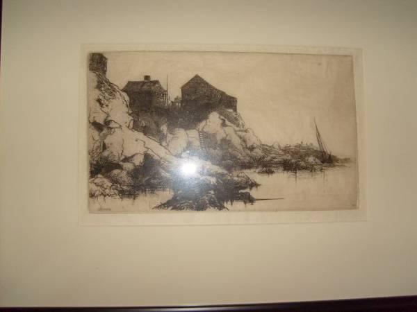 Stephen Parrish 1846 to 1938 was a painter and etcher during the American Etching Revival Era. He was noted for his landscape etchings of the harbors and villages of New England and Canada. He was the father of famed painter Frederick Maxfield Parrish. I have a large selection of over 70 of his works for sale with pricing starting at $100 and up. Need more info email or call. See sample pics below