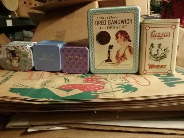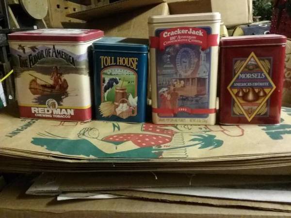 Have available 50 or so tins in various sizes and designs with prices starting at $1 and up. Need more info email or call. See sample pics below
