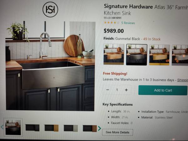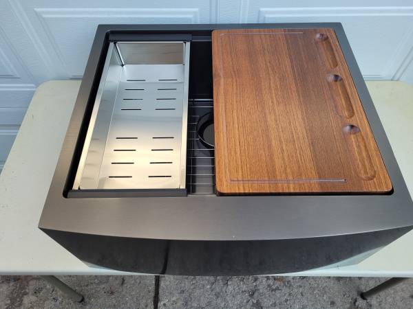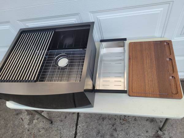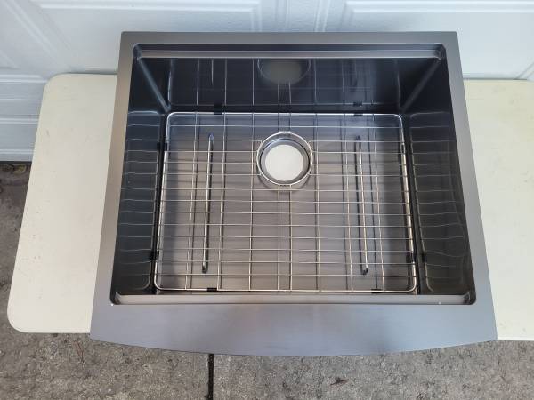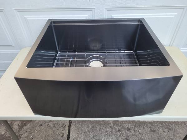 New in box 24" Farmhouse Sink Black + PVD Stainless Steel Sink Satin Finish 24" x 22" x 10" $100 cash only If posted, it's still available Thanks for looking.