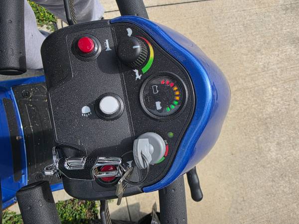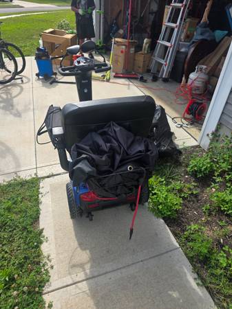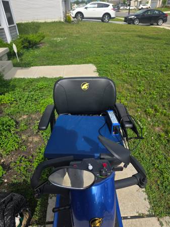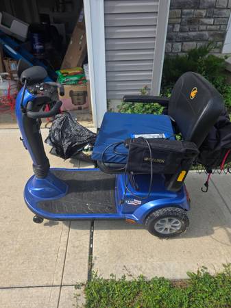 Full size GS340 Golden mobility scooter. Only a year old & only has been ridden under 10 times. Comes with a charger, cover, bag & seat cushion.