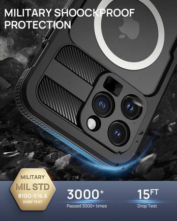 The Lanhiem Magnetic Case for iPhone 15 Pro Max is a sleek and stylish phone case that provides IP68 waterproof
