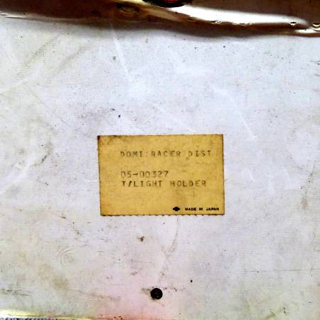 NOS part from Domiracer. It still has the protective cover on the outside and the underside is spotless. Is metal not aluminum. Just the perfect added touch for your bike !