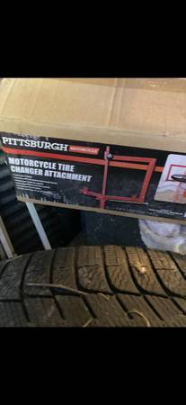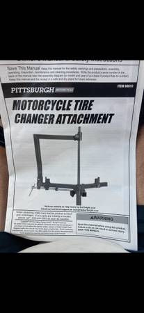 Pittsburgh motorcycle tire changer attachment-NEW! Still in box, I opened it to see what it was exactly. Made to fit on a manual tire changer, but you probably could chuck it up in a vise. First $20 takes it. Text or call me at show contact info