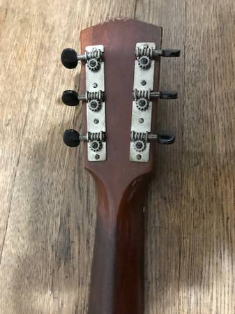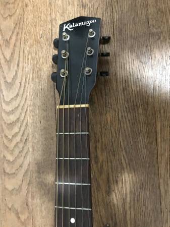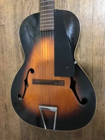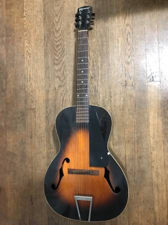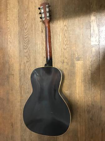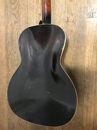 I think it's a model KG-21. Made by Gibson, branded Kalamazoo. It's all there, even the old pickguard. Moderate V-profile neck. Action is really good, between 2/32" and 3/32". Frets and fretboard...