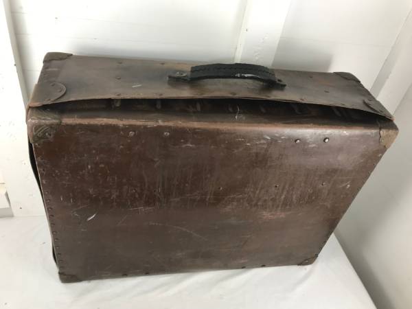 It's a big old trap case. Three sections: one for snare, two for accessories. About 30" by 21" by 10". It's been much used, but is in solid sturdy condition. I don't know who made it.