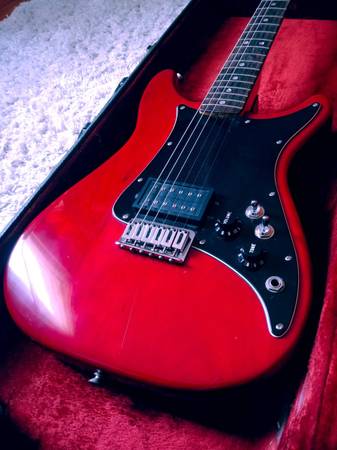 1981 or 1982 Fender Lead I Made in USA. I believe it is an ash body. Red wine transparent with maple neck and rosewood fretboard. Original Seth Lover humbucker. Has a new bone nut and new selector switches installed. Rear string ferrells may have been previously replaced as well. Has scratches and dings but overall, in great condition. Plays great, had pro set up done. Includes original hard case that is pretty beat up but good for storage. May trade.