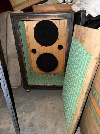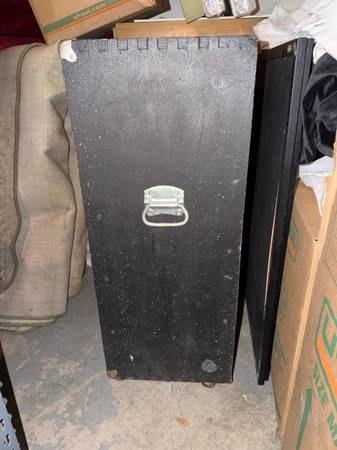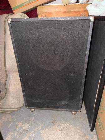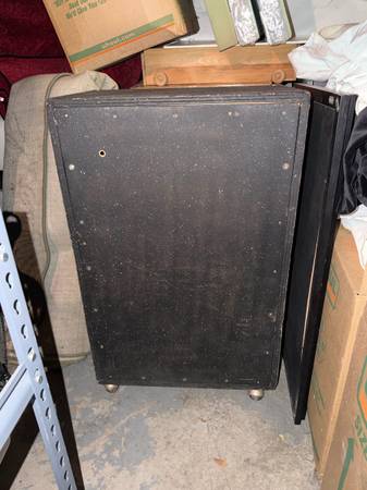2x15 speaker cabinet, home made in the 1970’s. Super sturdy, has casters on the bottom.