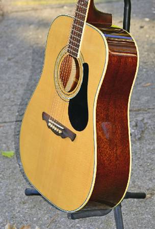 Beautiful Alvarez AD60S acoustic guitar with a Solid A + Sitka Spruce Top, African Mahogany B&S, and Rosewood fret board and Bridge. He has a 1 3/4 Nut width, which makes him much easier to fingerpick and cord with. I wasn't sure about the Nut & Saddle. Specs said they were Bone but I replaced them with real unbleached Bone Nut and Saddle. Put on a new set of D'Addario Phosphor Bronze Lights EJ16s to give him a even better sound with a punch. It truly is like a New guitar, only has some age on him to sound better. Also comes with a Gator poly-foam gig bag. Doesn't get much better than this. Enjoy