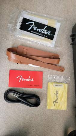 Fender leather strap, cable, cloths, manuals, hang tags