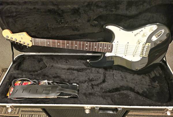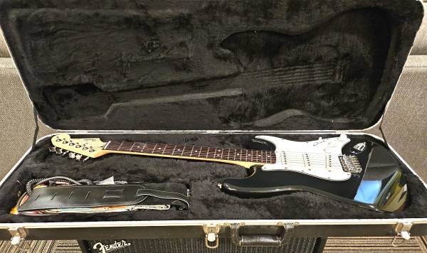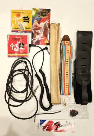 Many extras are included as well. Included are 2 straps, 2 cables, 2 sets of strings, guitar pin, tremolo bar, Fender Products Book, Fender Sticker, picks, polishing cloth, Authentic Fender Hardshell Case.