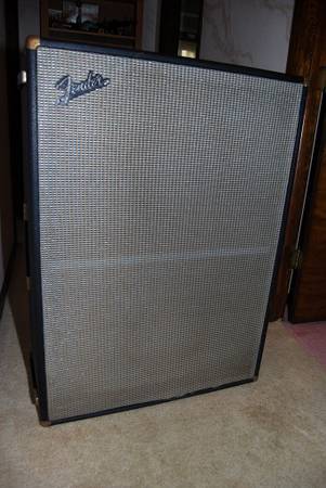 Offered here is a classic Fender 2-12 Bass speaker cabinet refitted with a pair of Celestion Pulse 12 model 200 watt rated speakers. While this cabinet shows the usual battle scars from many years of backline use, it sounds fantastic and will probably outlive us all! The box measures 39 x 29 x 11.5 inches and wears a serial plate displaying the number P17892. I've found no accurate way of dating Fender cabs by serial number but I believe it to be from the mid to late 1960's. Local pickup in Columbus, Ohio, cash only, face to face transaction.