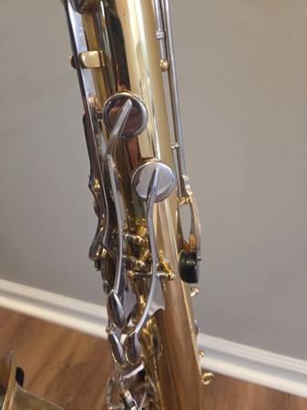 This Yamaha YTS-23 tenor saxophone is in good playing condition. It does have a rough finish and some minor dings. It is missing one of the key pearls. It comes with the pictured hard and soft...