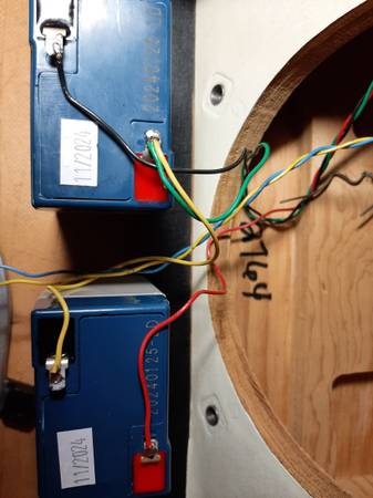 Runs on 2-6volt rechargable batteries. 2 channels with volume and tone controls, built in eq for voice or instrument. NEW BATTERIES AND NEW FACTORY CHARGER.