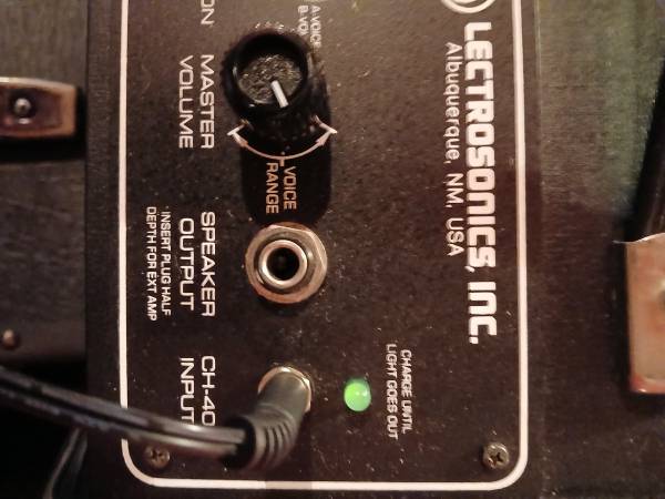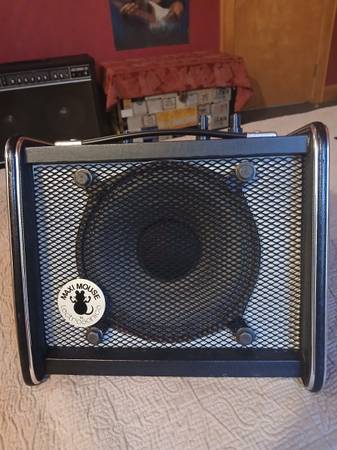 This take anywhere amp has fantastic sound for its size. With both volume and master volume you can get a great overdrive sound. Its a favorite of harmonica players. Play for 4 or 5 hours on a charge. On the street or in the woods this amp delivers. Will include copy of manual.