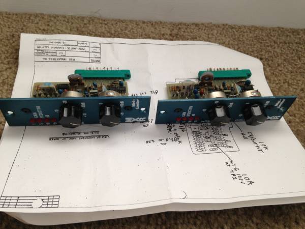 I bought these about 10 years ago and never got around to racking them. This is for a pair of the legendary - and incredibly rare - MXR limiters. They are NOS, never installed, with schematics, and paperwork. I also have a set of connectors that are included. Would need power supply etc to get up and running. I have a brand new 1U chassis I can include for an extra $50.